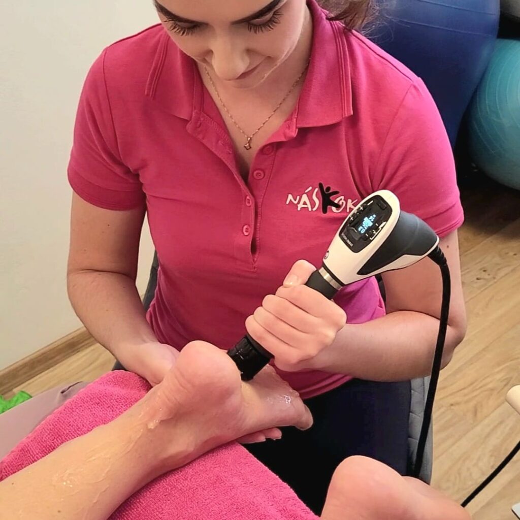 - Diagnostika a plán na míru: Každá noha je jiná. Fyzioterapeut vyhodnotí stav vašich tkání a nastaví parametry rázové vlny tak, aby byla terapie maximálně účinná.
